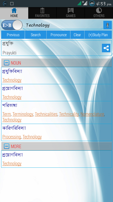 ইংরেজী উচ্চারণের সমস্যা থাকলে উচ্চারণ বলে দিবে! তার জন্য ইংরেজী ওয়ার্ডটি সার্চ বক্সে লিখে প্রোনাউন্স বাটনে ক্লিক করতে হবে। [ এক্ষেত্রে আপনার ফোনে অবশ্যই 'টেক্সট টু স্পিচ' ইঞ্জিন ইন্সটল থাকতে হবে। যা অধিকাংশ ফোনে প্রি-ইন্সটল করা থাকে। না থাকলে করে নিবেন।