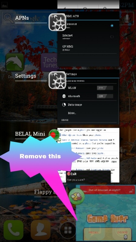 এবার ex file manager বের হয়ে হোম বাটন চেপে ধরে থাকুন এতে যদি নিচের মত flappy bird game দেখায় তাহলে ডান দিকে রিমুভ করুন