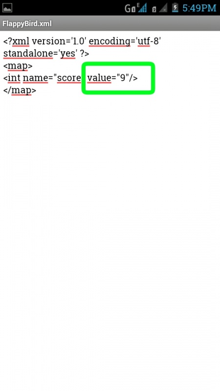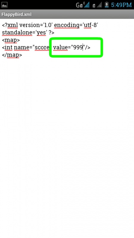 এখন চিহ্নিত flappybird.xml ফাইল টি এডিট করে নিচের মত ভেলু পরিবরতন করুন যেমন আমি ৯ থেকে ৯৯৯ করেছি