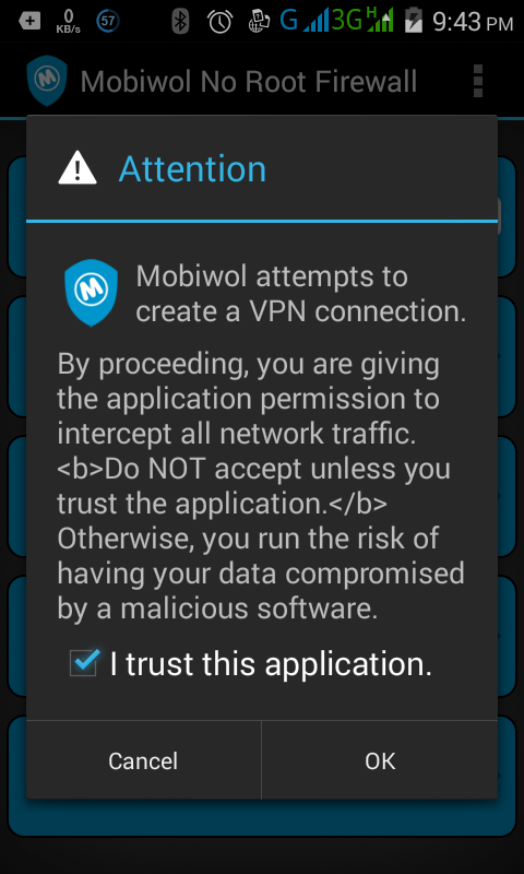 আপ্লিকেশনটির নাম Mobiwol: NoRoot Firewall