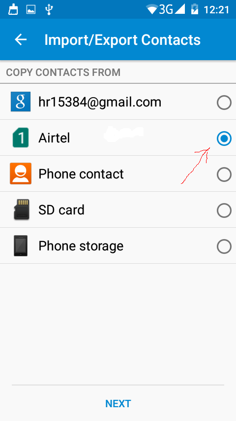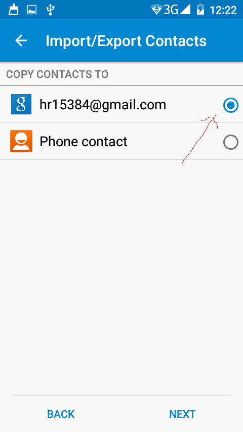 তারপর copy contacts to আপনার গুগোল ইমেল সিলেক্ট করে next করুন