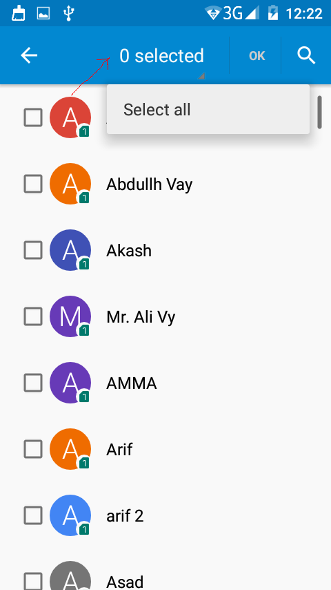তারপর contacts list আসবে সবগুলো সিলেক্ট করে ok করুন