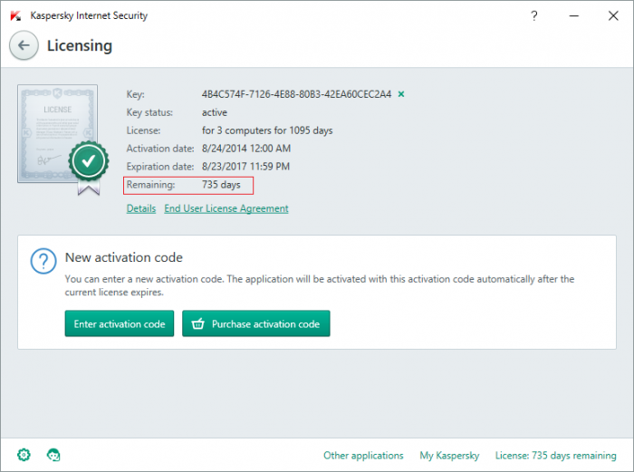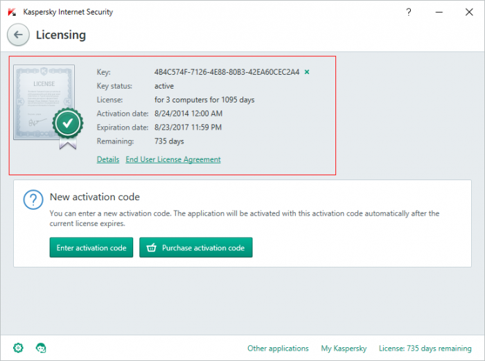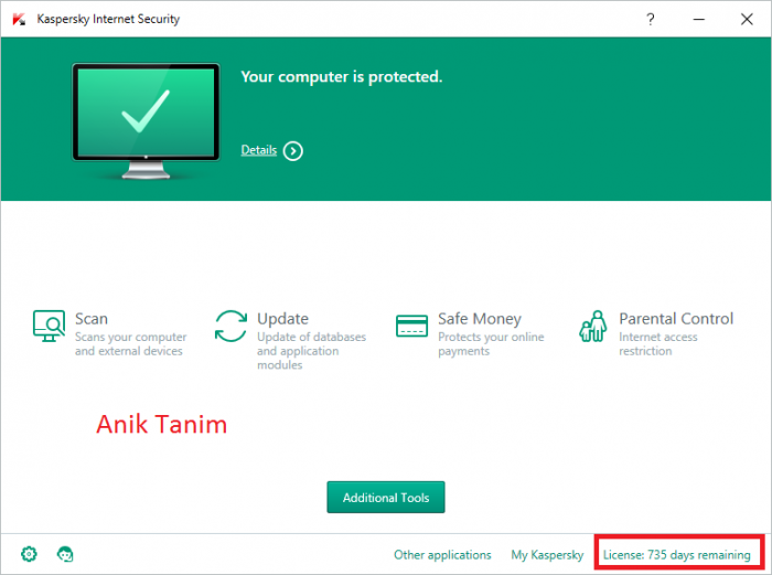 Kaspersky এন্টিভাইরাস পৃথীবির জনপ্রিয় এন্টিভাইরাস গুলোর মধ্যে অন্যতম।কিন্তু Kaspersky Lab এটি ৩০ দিনের ট্রাইল হিসেবে ব্যবহার করতে দেয়,কথা হল যাদের টাকার অভাব নেই তারা কিন্তু অনায়াসেই বাজার থেকে কিনে ব্যবহার করতে পারবে কিন্তু তাহলে আমরা কি করব যারা হিসেব করে চলি বা ছাত্র ? হ্যা তাই আমি আপনাদের জন্য নিয়ে আসলাম দুই বছর+ অর্থাৎ ৭৩৫ দিনের লাইসেন্স ফ্রী(যেটাতে আগের মত আপডেট দিলে ব্লক করে দেয়ার ঝামেলা নেই,তাই নিশ্চিন্ত থাকাটাই শ্রেয়)