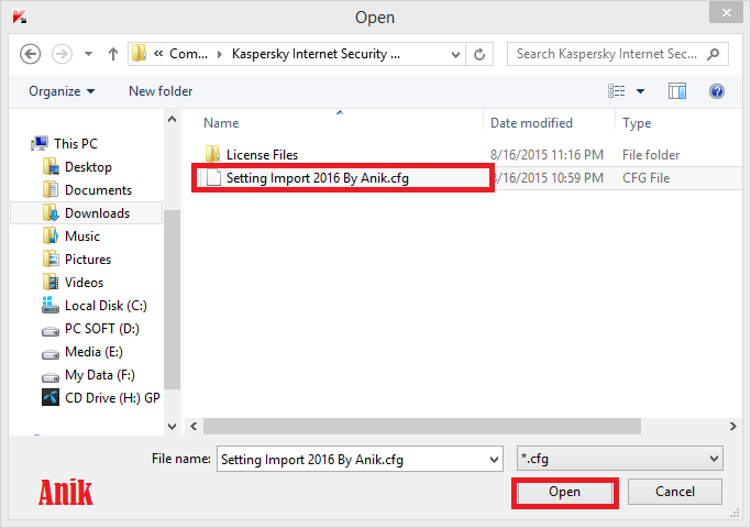 ৫, এবার আমার দেয়া Patch ফাইলটি আনজিপ করার পর ভেতরে একটা সেটিং পাবেন(Setting Import 2016 By Anik.cfg) এ ক্লিক দিয়ে Open এ ক্লিক দেন।