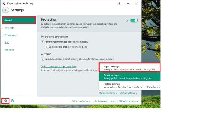 ৪, এবার Back করুন,তারপর Setting>General ট্যাব এ ক্লিক করুন ও এরপর ডানদিকে Manage Setting এ ক্লিক করুন এবার Import Setting এ ক্লিক করুন।