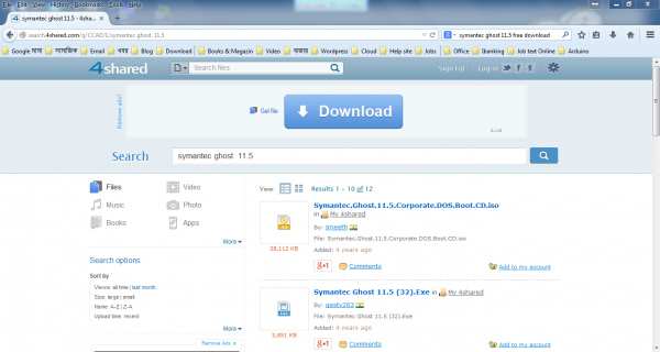ক্লিক করব। তাহলে পাব এ রকম স্ক্রীন আথবে 4shared.com সার্চ করলে পাব এই স্ক্রীন।