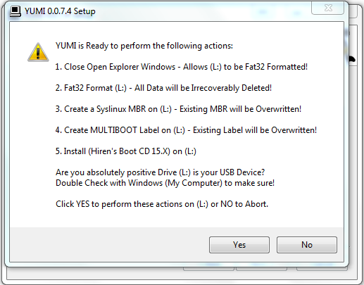 Browse করে আপনার ডাউনলোড করা Hiren's.BootCD লোকেশান দেখিয়ে দিন। এরপর Create বাটন ক্লিক করুন। নিচের উইন্ডো পাবেন। ইয়েস করুন।