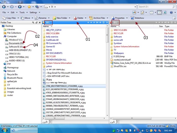 নিম্মের পিকচারে দেখুন পাশাপাশি দুইটা ড্রাইভ দেখা যাচ্ছে D এবং E । আপনার কষ্ট করে একাধিক ড্রাইভ আলাদা খুলতে হবেনা। এটা দিয়া আপনি পাশাপাশি কাজ করতে পারবেন। ডাটা অ্যাক্সেস করতে পারবেন সহজে। আপনি চাইলে একাধিক ড্রাইভ খুলতে পারেন আবার শুধু একটা ড্রাইভ এক্সপ্লোর করতে পারেন।