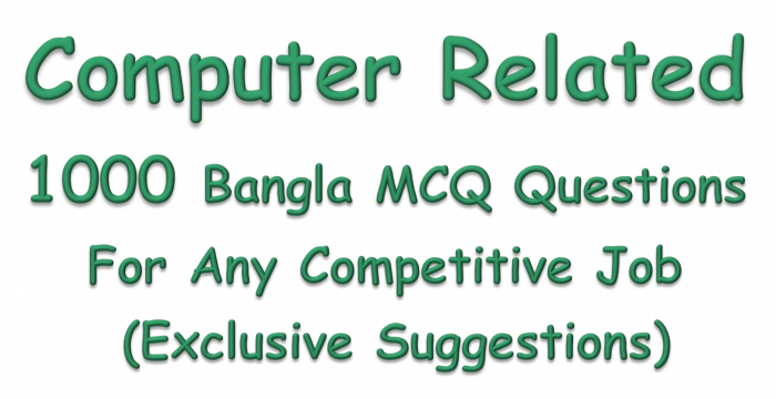 বিসিএস,ব্যাংক ও যে কোন জব পরীক্ষার "কম্পিউটার" বিষয়ের প্রস্তুতির জন্য খুব গুরুত্বপূর্ণ ১০০০ টি বাংলা এমসিকিউ বা নৈব্যত্তিক প্রশ্ন। এই ই-বুক বা নোট থেকে যে কোন প্রতিযোগিতামূলক পরীক্ষার "কম্পিউটার বিষয়ে" সর্বাধিক সংখ্যক প্রশ্ন কমন থাকবে। (কম্পিউটার, ট্যাব ও স্মার্ট ফোন ভার্সন)