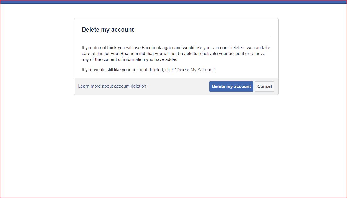তারপর উপরের মত একটি পেজ ওপেন হবে। এখানে "Delete My Account" এ ক্লিক করুন। ক্লিক করার পর নিচের মত আরেকটি পেজ ওপেন হবে।