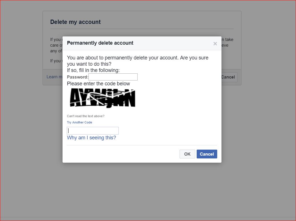 এখন আবার আপনার ফেসবুক একাউন্টের পাসওয়ার্ডটি দিন এবং ক্যাপচাটি পূরণ করুন। তারপর নিচের মত আরেকটি পেজ ওপেন হলে সেখানে লেখা থাকবে যে, আপনার ফেসবুক একাউন্টেটি ১৪ দিনের মধ্যে স্থায়ীভাবে ডিলিট হয়ে যাবে। তার আগে যদি আপনি আপনার একাউন্টেটিতে log in করেন। তাহলে আপনার একটি সুযোগ থাকবে একাউন্টেটি recover করার। আপনি যদি চান একাউন্টেটি ডিলিট করতে। তাহলে ok তে ক্লিক করুন।