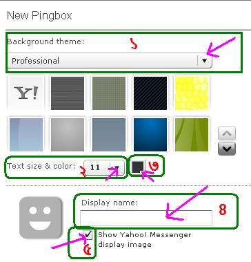 ৫. Show Yahoo! Messenger display image: আপনি আপনার Yahoo Messenger এ যে Image ব্যবাহর করছে তা যদিPingbox এ show করতে চান তবে টিকচিহ্ন দিন না করতে চাইলে উঠিয়ে দিন।