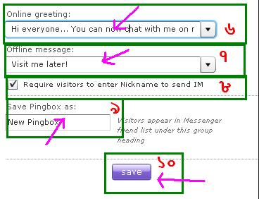 ৯. Save Pingbox as: আপনি আপনার Pingbox টি yahoo server এ যে নামে save রাখতে চান সে নামটি এই box এ লিখে দিন। যে কেন নাম দিতে পারে, চাইলে আপনার Girlfriend এর নাম ও দিতে পারেন কোন সমস্যা নাই। এইটা Visitor দেখবে না।