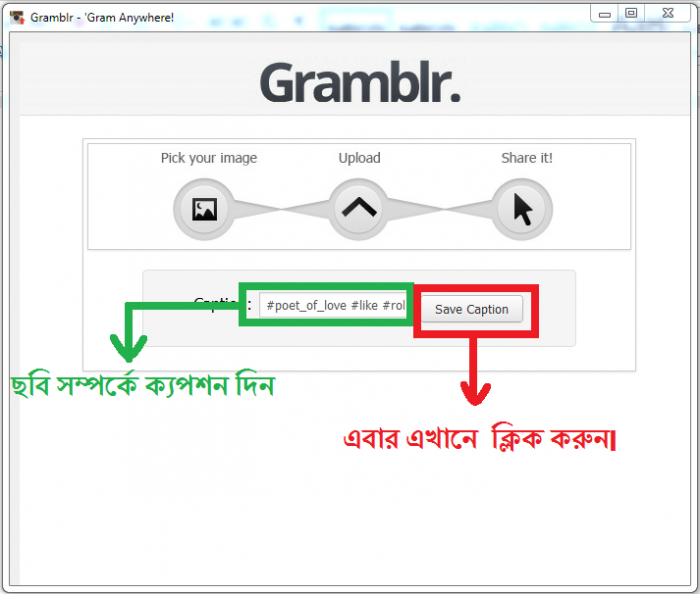তারপর save caption এ ক্লিক করুন। এবার আপনার কাজ শেষ। এবার আপনার ছবি ইনস্থাগ্রাম এ আপলোড হয়ে যাবে।