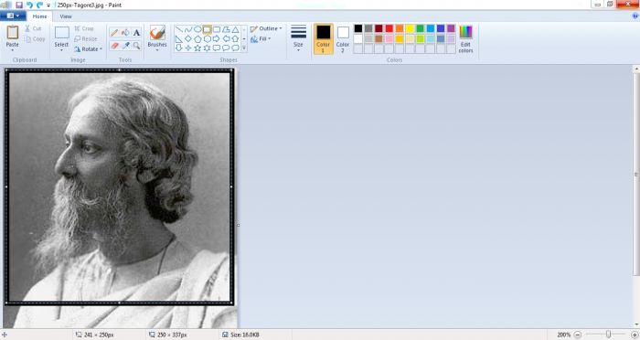 যেমন: আমি paint দিয়ে রবি ঠাকুরের ছবি টি বর্গাকারে কেটে নিলাম।