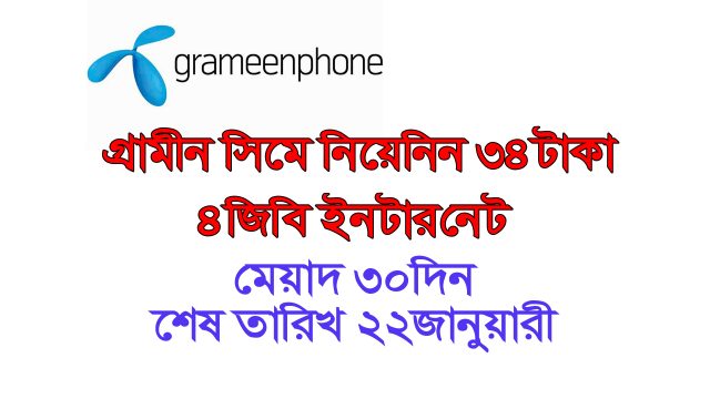 সেটি হচ্ছে জিপি দিচ্ছে ৩৪টাকায় ৪ জিবি ইন্টারনেট