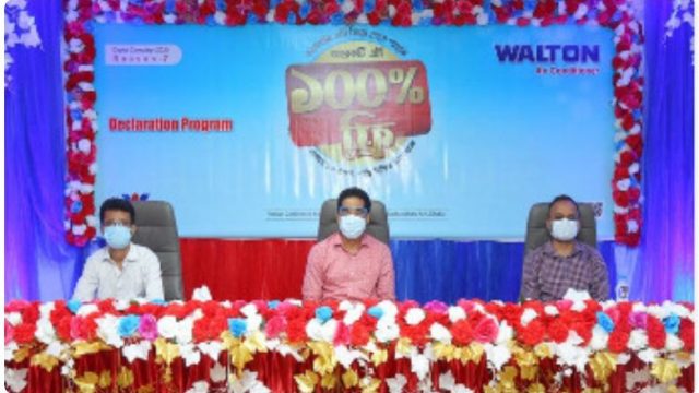 ডিক্লারেশন প্রোগ্রামে উপস্থিত ছিলেন ওয়ালটনের নির্বাহী পরিচালক এস এম জাহিদ হাসান, হুমায়ূন কবীর, উদয় হাকিম, মো. তানভীর রহমান, মোহাম্মদ রায়হান ও ড. মো. সাখাওয়াৎ হোসেন; ডেপুটি এক্সিকিউটিভ ডিরেক্টর ফিরোজ আলম, শাহজাদা সেলিম ও শাহ আলম, অপারেটিভ ডিরেক্টর খোন্দকার শাহরিয়ার মুরশিদ, ডেপুটি অপারেটিভ ডিরেক্টর মফিজুর রহমান, অ্যাডিশনাল ডিরেক্টর মিলটন আহমেদ, সিনিয়র ডেপুটি ডিরেক্টর জাহিদুল ইসলাম প্রমুখ।