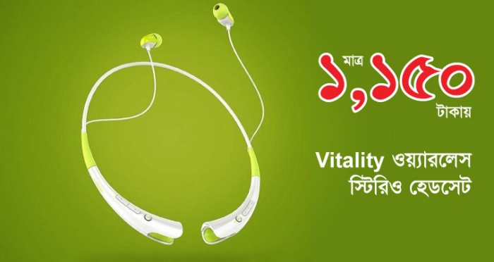 আনকমন VITALITY ওয়্যারলেস স্টিরিও হেডসেট টি পাচ্ছেন মাত্র ১,১৫০ টাকায়। একসাথে ২টি ফোন কানেক্ট করা যায়।
