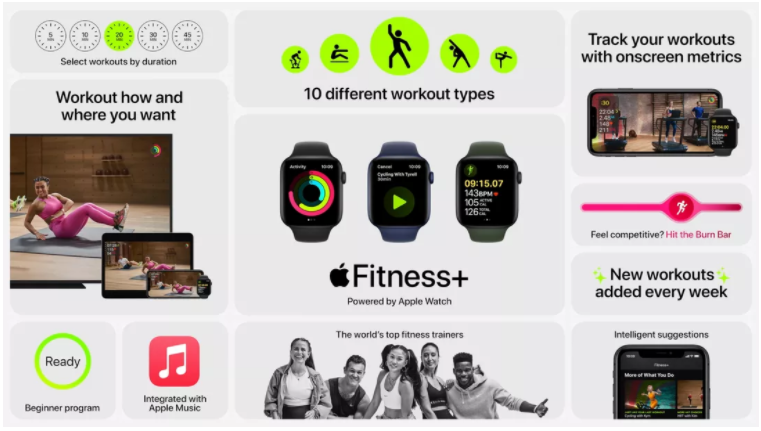 Apple এর বৃহত্তম ঘোষণার মধ্যে ছিল Apple Fitness Plus, এটি ছিল Peloton এর মতো একটি ওয়ার্ক-আউট স্ট্রিমিং সার্ভিস। অ্যাপল ডিভাইস ইউজাররা Fitness Plus এর মাধ্যমে শীর্ষ প্রশিক্ষকদের কাছ থেকে গাইডেড ওয়ার্ক-আউটে টিউন করতে পারবে, এমনকি এর মাধ্যমে তারা Apple Watch এর মেট্রিকগুলিও দেখতে পারবে।