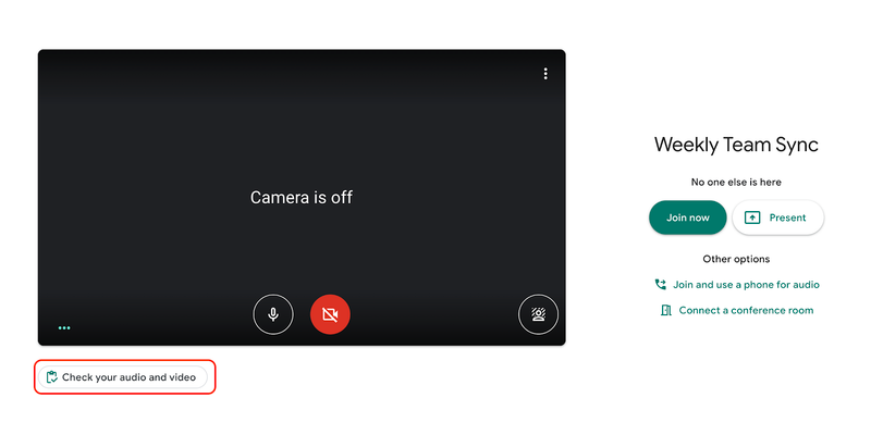 সম্প্রতি গুগল এই ফিচারটি তাদের অফিসিয়াল ওয়েবসাইটে ঘোষণা করেছে, মাইক্রোফোন এবং ভিডিও ক্যামেরা টেস্টিং এর ফিচারটির নাম দিয়েছে Green Room ফিচার। Google Meet এর কোন কলে যুক্ত হবার আগে "Check your audio and video" বাটমে ক্লিক করে আপনি গ্রিন রুমে প্রবেশ করতে পারবেন। যেখানে আপনি Video এবং Audio, প্রিভিউ দেখতে পাবেন। আপনাকে আর সবার সামনে বিব্রত হতে হবে না।