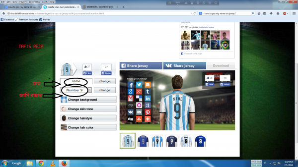 আজ আপনাদের দেখাবো কিভাবে আপনি আপনার পছন্দের টিমের জার্সিতে নিজের নাম বসাবেন। এটা খুবই সহজ কাজ,এবং এতে ফটোশপ ও লাগবেনা 😀