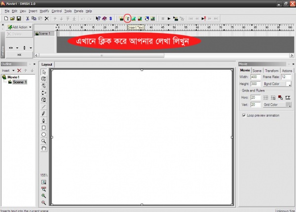 তারপর Insert Text বাটনে ক্লিক করুণ এনিমেশন লেখার জন্য।