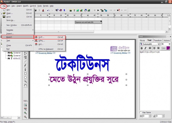 প্রথমে এখান থেকে SWiSH v2.0 প্লাগইংস ডাউনলোড করে ইন্সটল করুণ।