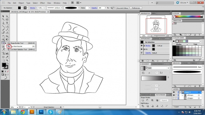 এরপর টুলবক্স থেকে Live Paint Bucket সিলেক্ট করুন ,