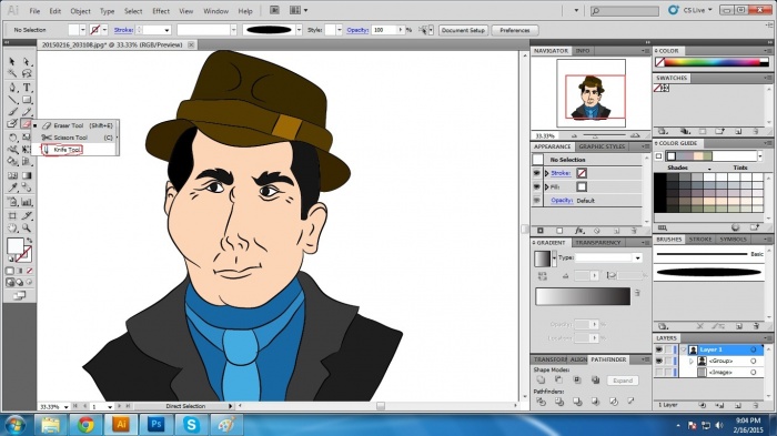 এবার টুলবক্স থেকে Knife Tool টি সিলেক্ট করুন ।