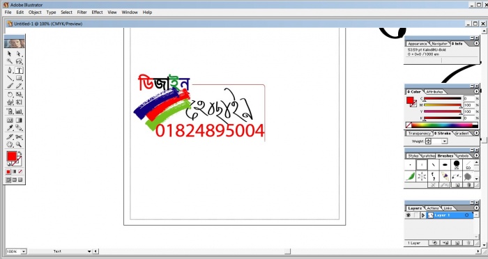 আর লেখা স্টাইল (মোটা/চিকন) চেঞ্জ করতে হলে Brush প্যালেট থেকে সিলেক্ট করুন। আর Selection Tool সিলেক্ট করে পুরো লেখা সিলেক্ট করে কালার চেঞ্জ করতে পারবেন নিজের মত করে