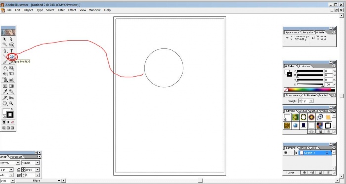 প্রথমে চাঁদ আঁকব সেজন্য Tool বক্স থেকে Oval টুলটি সিলেক্ট করে SHIFT ধরে নিচের মত আঁকুন।