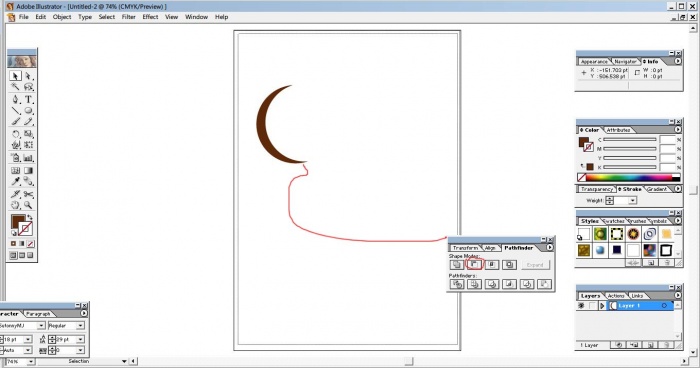 এবার Pathfinder প্যালেট থেকে নিচের আইকনে ক্লিক করুন আর দেখুন ঈদের চাঁদের মত দেখতে একটি চাঁদ হয়ে গেল।