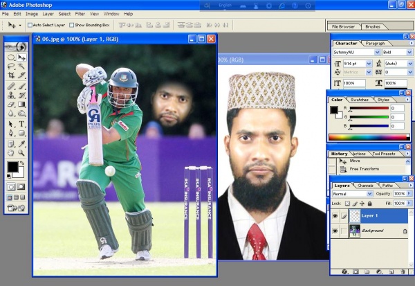 তারপর আপনি যে ছবিটার গলা কাটতে এবং যে ছবির যে ছবির উপর গলা কেটে বসাতে চান ছবিগুলো ওপেন করুন । এখানে আমি আমার ছবি ও একজন খেলোয়াড় এর ছবি ওপেন করলাম,