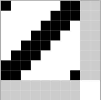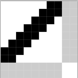 ৫.টুল অপশন থেকে PENCIL TOOL টি সিলেক্ট করুন।উপরের টুল অপশনবারে সেটিংস দিন BRUSH SIZE- 2 PXL ,MODE-NORMAL, OPACITY-100% এবং FOREGROUND কালার ব্লাক দিয়ে OK করুন।এখন উপরের ছবিটির নিচের বাম পাশের কোণা থেকে উপরের ডানপাশের কোণা পর্যন্ত এক এক করে ক্লিক করুন।তাহলে নিচের চিত্রে মত হবে।