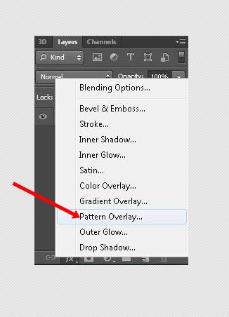 ৭.এখন BG নামের লেয়ারটি সিলেক্ট থাকা অবস্থায় লেয়ার প্যালেট এর একদাম নিচে দ্বিতীয় আইকোন ADD A LAYER STYLE এ ক্লিক করে PATTERN OVERLAY সিলেক্ট করুন।নিচের চিত্র দেখুন।