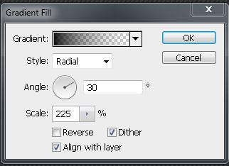 আবারও একটি ডায়ালগ বক্স আসবে।সেখান থেকে STYLE- RADIAL,ANGLE-30,SCALE-225 এবং DITHER এ টিক মার্ক দিন।
