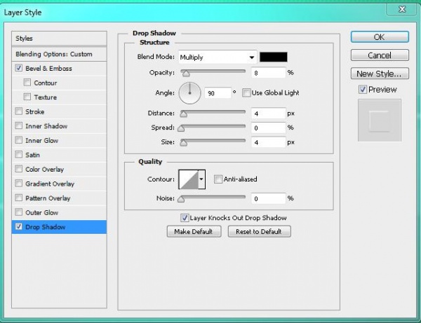 ডায়ালগ বক্সটির বাম পাশে DROP SHADOW সিলেক্ট করুন।এবং নিচের মত সেটিংস দিয়ে OK করুন্