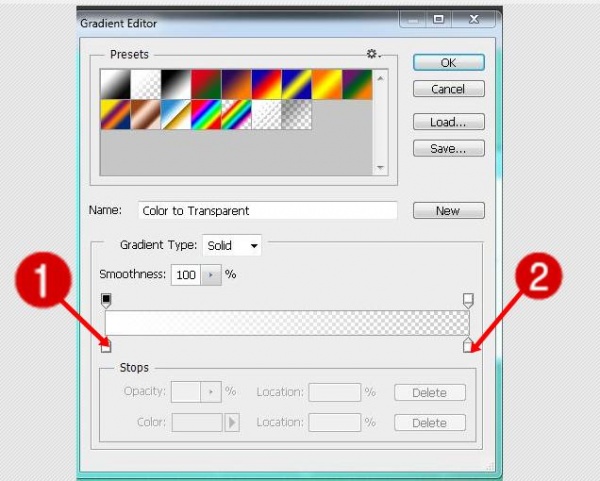 OK করার পরে আবারো একটি ডায়ালগ বক্স আসবে সেখানে GRADIENT নামে একটা OPTION আছে।GRADIENT এর উপরে ক্লিক করুন।এবং নিচের দেখানো স্থানে ডাবল ক্লিক ১ নং তির চিহ্নে কালার দিন গাঢ় BLACK এবং ২ নং তির চিহ্নে কালার দিন হালকা BLACK .THEN ওক করুন।