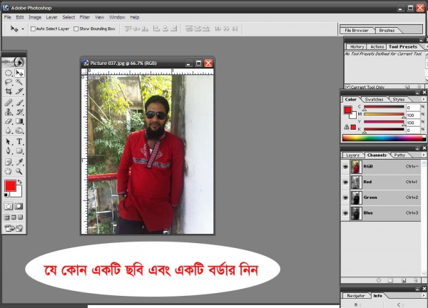 ডাউনলোড করে ফটোশপে আপনার ছবি ও একটি বর্ডার/ব্রাকগ্রাউন্ড ওপেন করুণ।