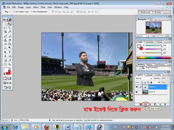 এবার মাস্কিং ইফক্ট ছবির মধ্যে দিতে হলে লেয়ার প্যালেট থেকে Add Layer Mask এ ক্লিক করুন।