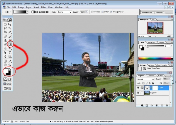 এবার আমরা ছবিকে মাঠের সাথে মিশেয়ে দিব যেন বুঝা না যায় এটা আলাদা নেওয়া হয়েছে