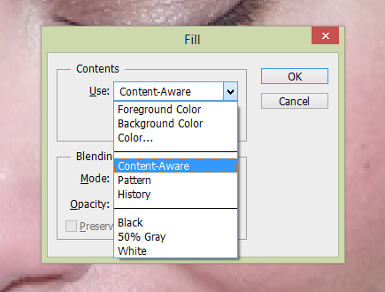 এবার কীবোর্ড থেকে Shift + F5 প্রেস করুন । নতুন উইন্ডোতে Content Aware সিলেক্ট করে ওকে করুন ।