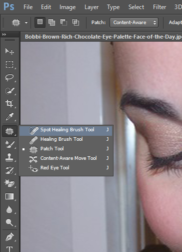 এবার ফটোশপে ওপেন করুন । এবার বাম সাইডের টুলস প্যানেল থেকে Spot Healing Brush Tool সিলেক্ট করুন । আমি ফটোশপের লেটেস্ট ভার্সন Abode Photoshop CC ব্যাবহার করছি ।