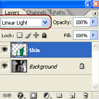 এখন “Skin” লেয়ারের ব্লেন্ডিং মোডকে “Linear Light” তে রূপান্তর করুন।
