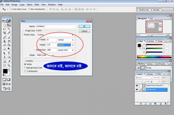 তারপর File>New তে ক্লিক করে নিচের মাপ দিয়ে Ok করুন।