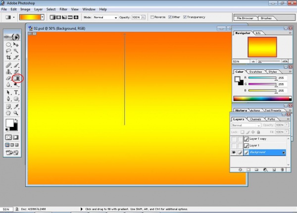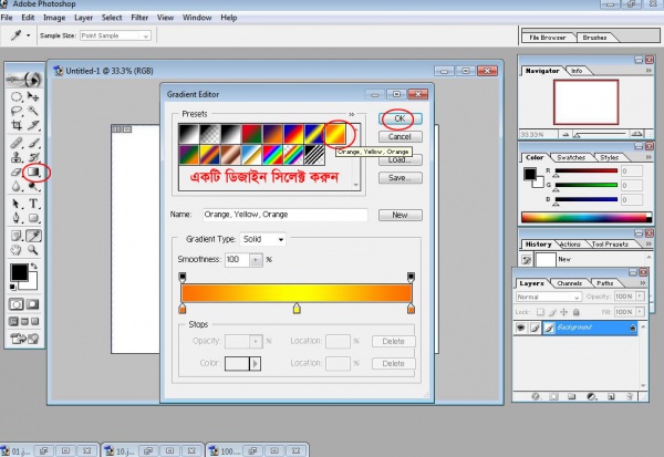 এবার টুলবার থেকে গ্রাডিয়েন্ট টুল সিলেক্ট করুন, এবার গ্রাডিয়েন্ট স্টাইল থেকে যে কোন একটি স্টাইল পছন্দ করুন।