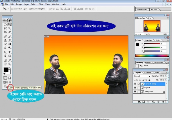 তারপর টুলবারের Jump To Image Ready (Ctrl+Shift+m) টিপ দিন। তাহলে ইমেজ রেডি চালু হবে।