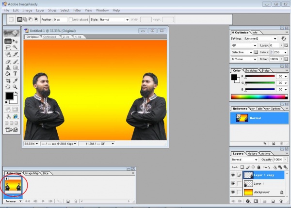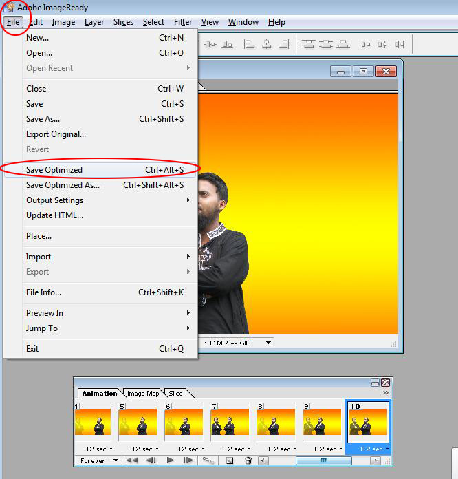 এবার এনিমেশন টি সেভ করতে হলে File> Save Optimized বাটনেক ক্লিক করে সেভ করে রাখুন ।