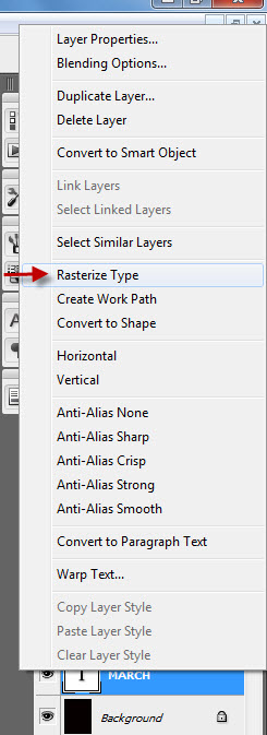 এরপর Layer panel থেকে right button click করে Rasterize Type করে নিতে হবে।