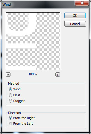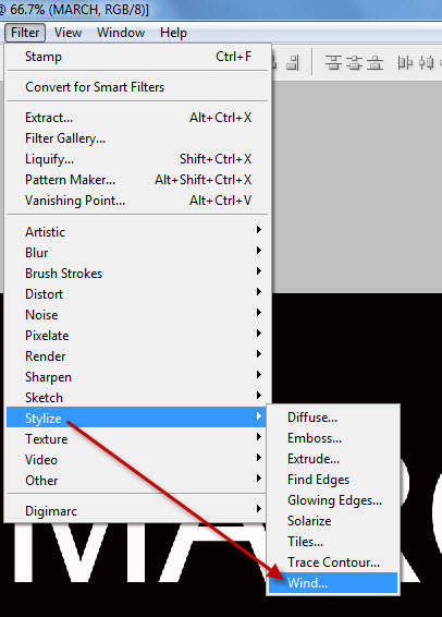 পরে Fillter মেনু থেকে Stylize >> wind select করতে হবে ।